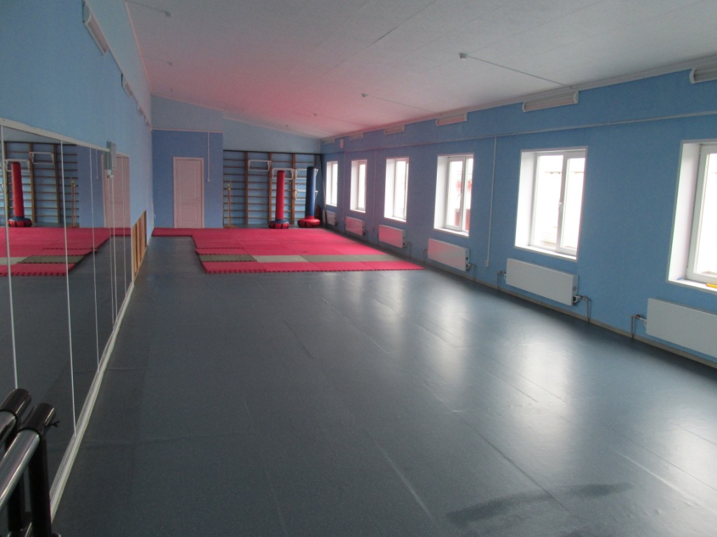 Спортивный зал 44м х 24м с трибунами на 1500 мест, тренажерный зал, разминочный зал 11м х 10м где можно проводить соревнования, сборы, тренировки по баскетболу, волейболу, футболу, художественной гимнастике и различным видам единоборств. А также проводить танцевальные, концертные и другие культурно-массовые мероприятия.